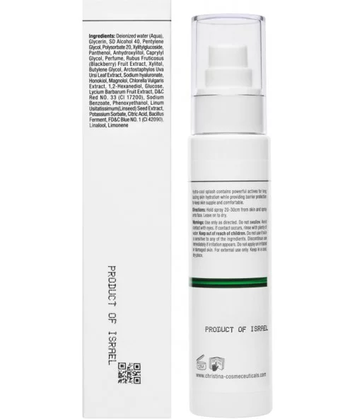 Освіжальний спрей із потужними активними речовинами для тривалого зволоження шкіри. Діє як захисний бар'єр, підтримуючи еластичність і комфорт шкіри.