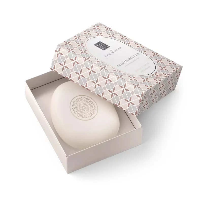 Очищаючий батончик для обличчя Ritual of Namaste був створений з інгредієнтами найвищої якості, щоб ніжно очищати шкіру, залишаючи її свіжою та надаючи омолоджений, сяючий вигляд. pH-збалансована формула без мила містить 93% інгредієнтів натурального походження. Це означає, що ви можете попрощатися з дратівливими та висушуючими хімікатами. Батончик для очищення обличчя містить мигдалеву олію та спеціальний комплекс з вітаміном Е для ефективного очищення шкіри, зволоження та відновлення балансу. Вітамін Е відомий своїми поживними і захисними властивостями, а також позитивним впливом на здоров'я шкіри. Багата протеїнами та вітамінами ніжна олія солодкого мигдалю має живильну та заспокійливу дію та допомагає регулювати рівень зволоженості шкіри. Зручний розмір робить цей продукт ідеальним для подорожей. Він також сподобається людям, які ведуть зайнятий спосіб життя або шукають більш екологічну альтернативу рідким миючим засобам для обличчя. Він також досить ніжний, щоб використовувати його щодня, незалежно від типу шкіри.
