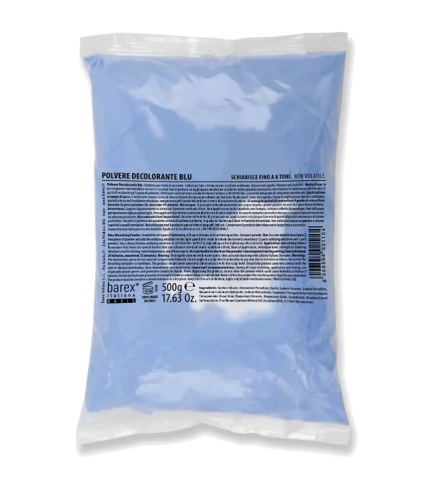 Блакитний знебарвлювальний порошок. Підходить для всіх технік освітлення. Безпиловий. Просвітлює до 8 тонів. Антижовтий ефект.