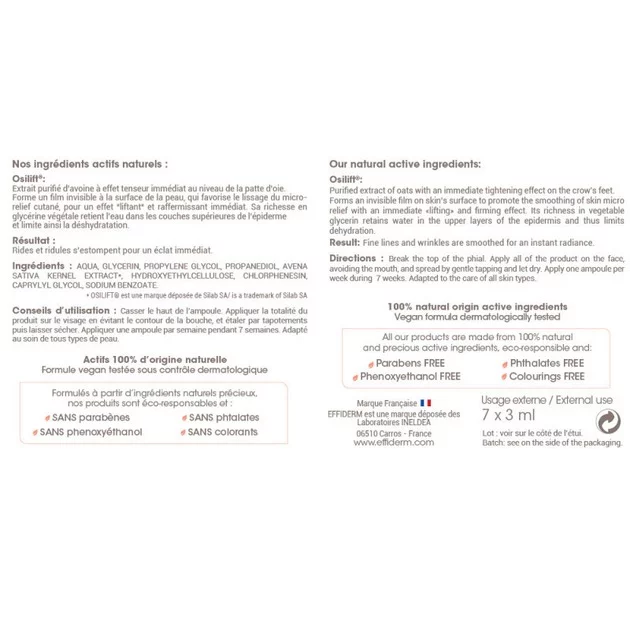 EFFIDERM Ампульна сироватка зволоження та ліфтинг «Миттєве сяяння» / AMPOULES "INSTANT ÉCLAT", 7 ампул x 3 мл