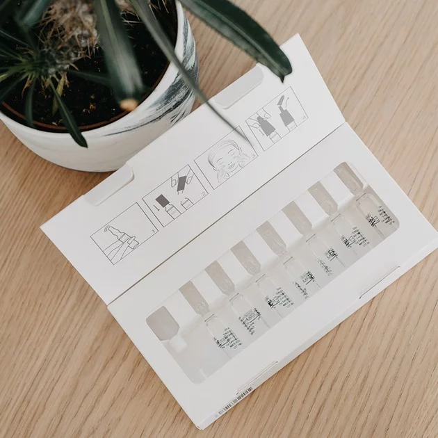 Застосування: Вскрийте ампулу. Нанесіть сироватку на чисту та суху шкіру обличчя та шиї легкими поплескуваннями, дозвольте препарату вбратися. Використовуйте 1 ампулу на тиждень протягом 10 тижнів.