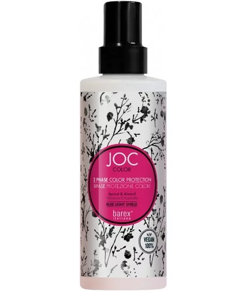 Двофазний спрей-кондиціонер Barex робить волосся блискучим і сяючим. Полегшує розчісування та підвищує інтенсивність відтінку, не обтяжуючи волосся. Містить фірмовий фільтр Blue Light Shield, що захищає локони та шкіру голови від негативної дії HEV випромінювання (синє світло екранів електронних пристроїв).