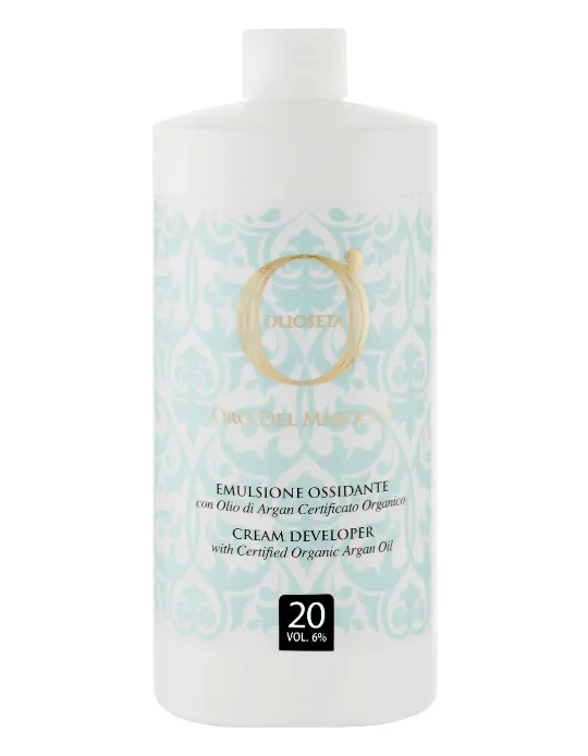 Окислювальна емульсія створена для синергічної дії з крем-фарбою, що суперосвітлює крем-фарбою без аміаку й просвітлює порошком Oro del Marocco. Кремоподібна текстура гарантує легкість нанесення й ідеальне формування косметичного відтінку з дбайливим ставленням до структури волосся, Ексклюзивна формула містить арганову олію, що глибоко живить і зволожує волосся. НЕ МІСТИТЬ ПАРОБЕНОВ.