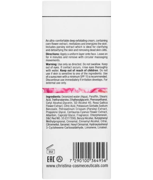 Гоммаж глибоко відлущує, містить екстракт волошки, яка оживляє шкіру, заряджає енергією. Екстракт петрушки очищує, видаляє мертві клітини, запобігає шкідливій дії навколишнього середовища. Посилює ефект догляду, спрямованого для боротьби зі зморшками. Після застосування Muse Illuminating Gommage поверхня шкіри – чиста, гладка та оксамитова на дотик.
