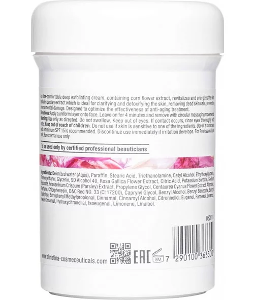 Гоммаж ефективно очищує, відлущує ороговілі клітини шкіри. Містить екстракт петрушки, що надає детоксикаційну, очищувальну та освітлювальну дію. Шкіра після застосування засобу виглядає свіжою та сяючою.