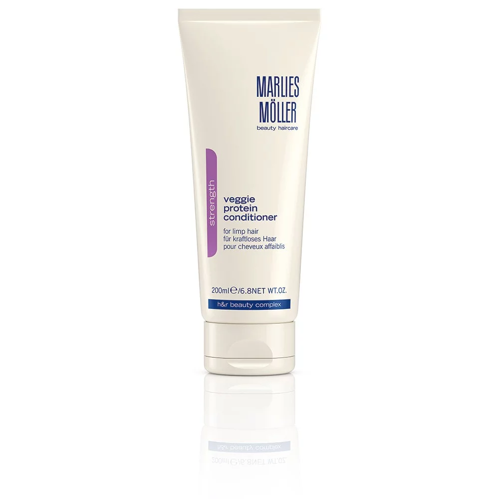Marlies Moller Veggie Protein Conditioner - кондиціонер на рослинній основі, створений спеціально для ослабленого волосся. Засіб допоможе зберегти оптимальний рівень зволоження, забезпечить легке розчісування, дарує локонам антистатичний ефект. Олія манго, екстракт цукрової тростини та гідролізовані рослинні протеїни зміцнять і наповнять силою стрижень волосся, вплинуть на регенеруючу дію на структуру волосків.