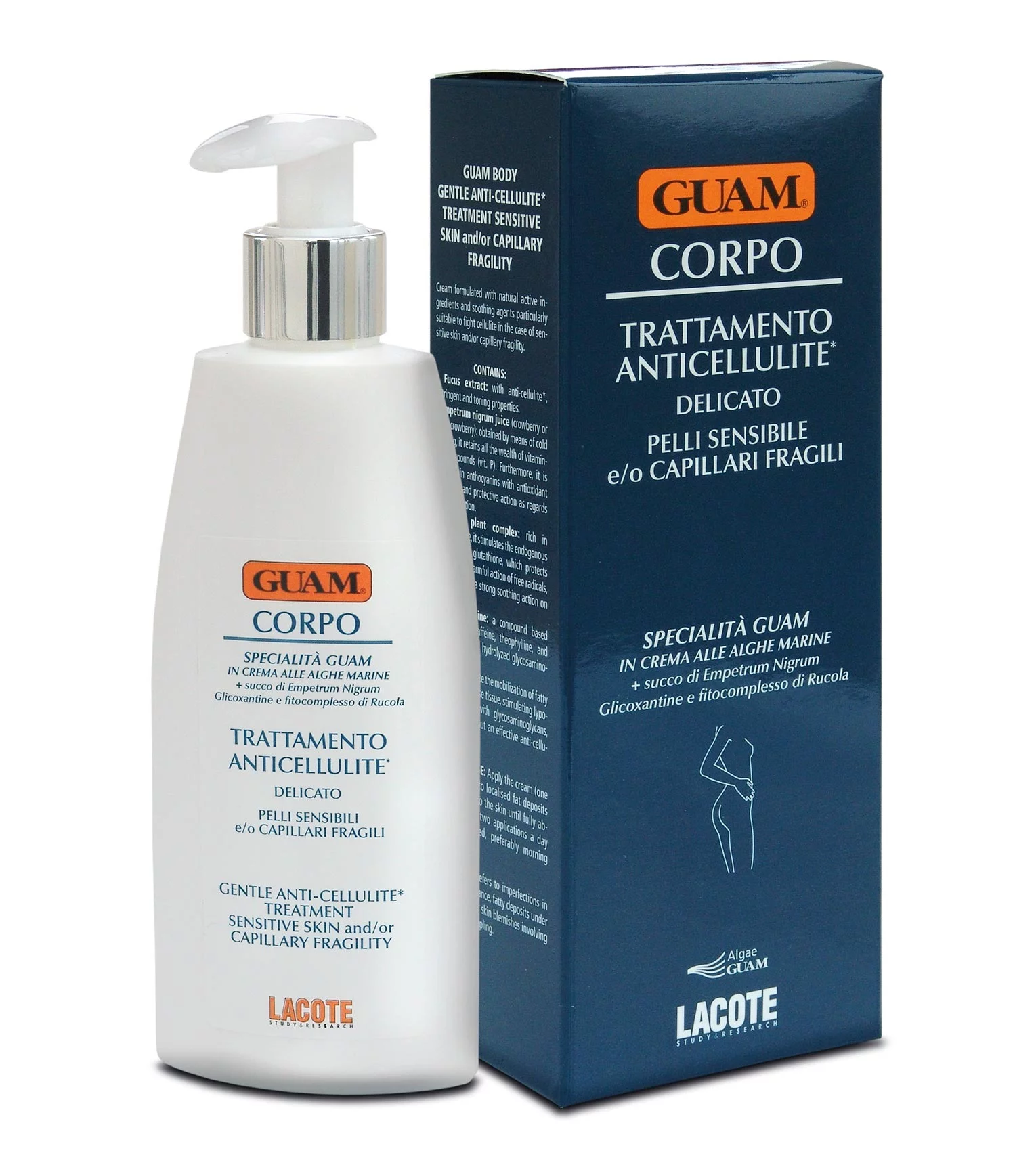 Спеціально створена формула крему GUAM Specialistica дієва для чутливої шкіри і / або шкіри з тендітними капілярами. Містить активний натуральний екстракт водоростей GUAM, а також заспокійливий комплекс рослинних екстрактів, які мають властивості вирівнювати шкіряний рельєф і повертати шкірі еластичність і пружність.