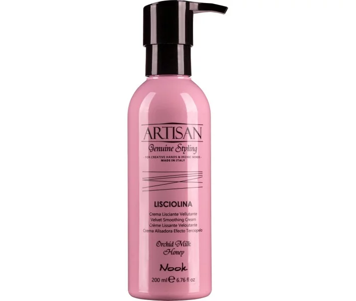 Вельветовий Крем, що розгладжує. Формула з молочком орхідеї та медом. Крем, що розгладжує, має вельветову, приємну текстуру. Для створення гладкого, шовкового, ідеального стилю. Гарантує легку, еластичну фіксацію з термозахистом. Дисциплінує, зволожує і контролює завиваність, роблячи волосся слухняним, блискучим і м'яким. Живить без обтяження. Ідеальний для стайлінгу за високих температур.