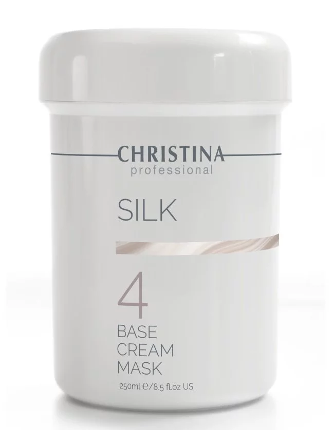 Формула маски для обличчя Christina Silk Base Cream Mask збагачена екстрактами кореня женьшеню, портулаку городнього і центелли азіатської, які разом з активними компонентами делікатно розкривають кожну пору і м'яко розчиняють жирні кислоти. Унікальний склад маски дає змогу забезпечити максимальне проникнення і дію корисних речовин наступних засобів для догляду.