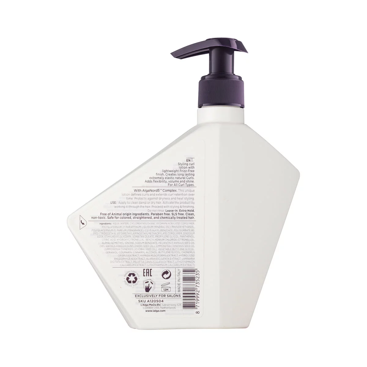 Лосьйон для укладання з невагомим фінішем без ефекту пухнастості. Сильна фіксація. Створює супереластичні природні локони, які надовго зберігають свою форму. Надає пружність, об'єм і блиск всім типам кучерявого волосся. Збагачений комплексом AlgaNord5 ™, лосьйон підкреслює завиток і надійно фіксує локони, захищаючи їх від пересушування та пошкоджень під час гарячої укладки.