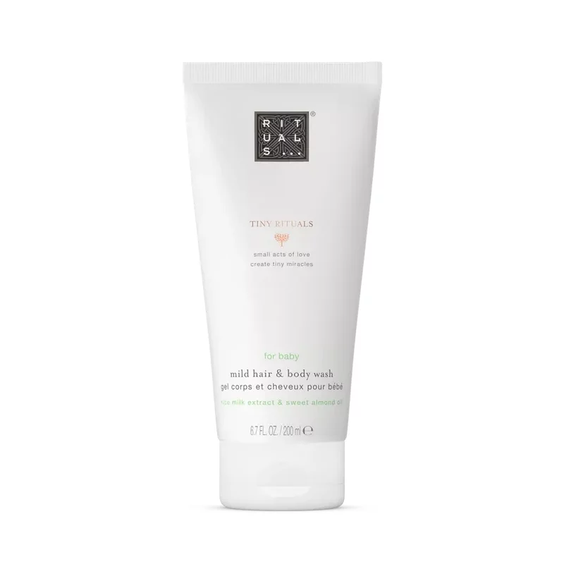 Ультраніжна, заспокійлива рідина для миття шкіри та волосся дитини. Ніжно очищає, роблячи волосся красивим, м'яким, чистим і блискучим. Олія солодкого мигдалю і заспокійливе рисове молочко забезпечують надзвичайно ніжний догляд за шкірою. Ніжний для очей, не щипає і легко змивається. Завдяки м'яким інгредієнтам рідина перетворюється на ніжну піну.