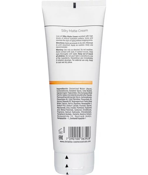 Легкий зволожувальний крем містить усі необхідні компоненти для омолодження, захисту та відновлення шкіри тіла після фотоушкоджень. Також Forever Young Silky Matte Cream має виражену зволожувальну дію. Має низький вміст жирів. Швидко вбирається в шкіру, надає їй шовковистості та матовості, сприяє вирівнюванню розтяжок.