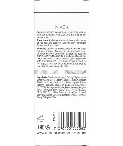 Освітлююча маска, створена фахівцями ізраїльського бренду Christina, призначена для боротьби з недосконалостями шкіри - пігментними плямами і першими віковими змінами.