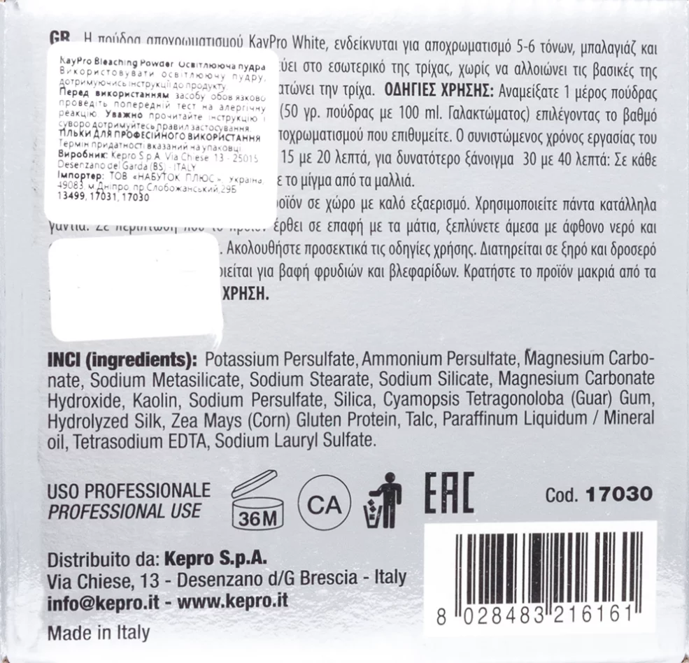 Пудра призначена для освітлення волосся до 5-6 тонів. Вона делікатно впливає на волосся, не зневоднює його і не порушує його основні функції. Пропорція змішування з окисником 1:2.