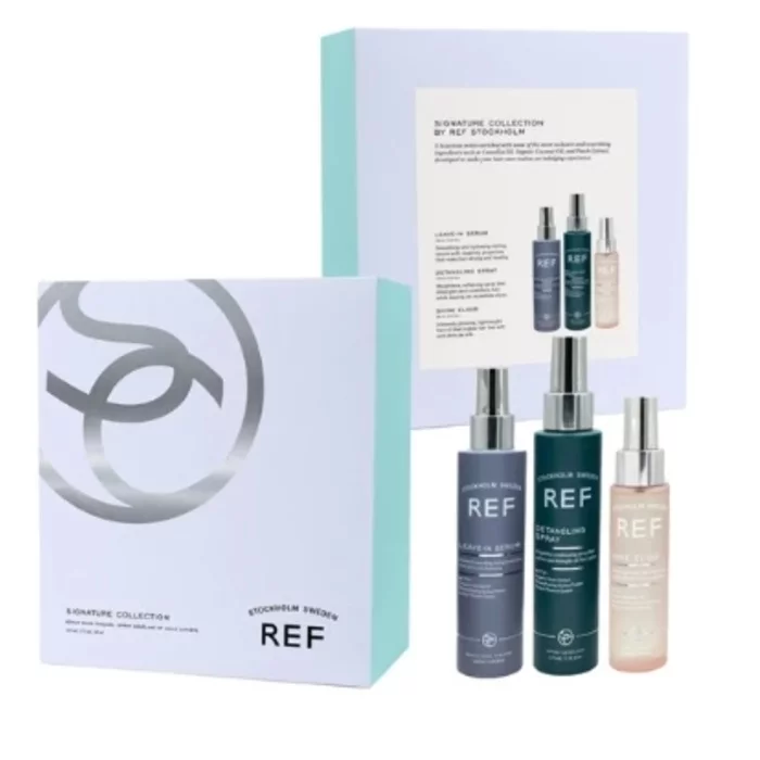 Розкішна лінія із високоефективними формулами. Набір від REF складається з трьох продуктів, збагачених одними з найексклюзивніших і поживних інгредієнтів, таких як олія камелії, органічна кокосова олія та екстракт персика. Кожен із косметичних засобів – це унікальна формула, яка дарує волоссю максимальний догляд, здоровий вигляд та розкішне сяйво.