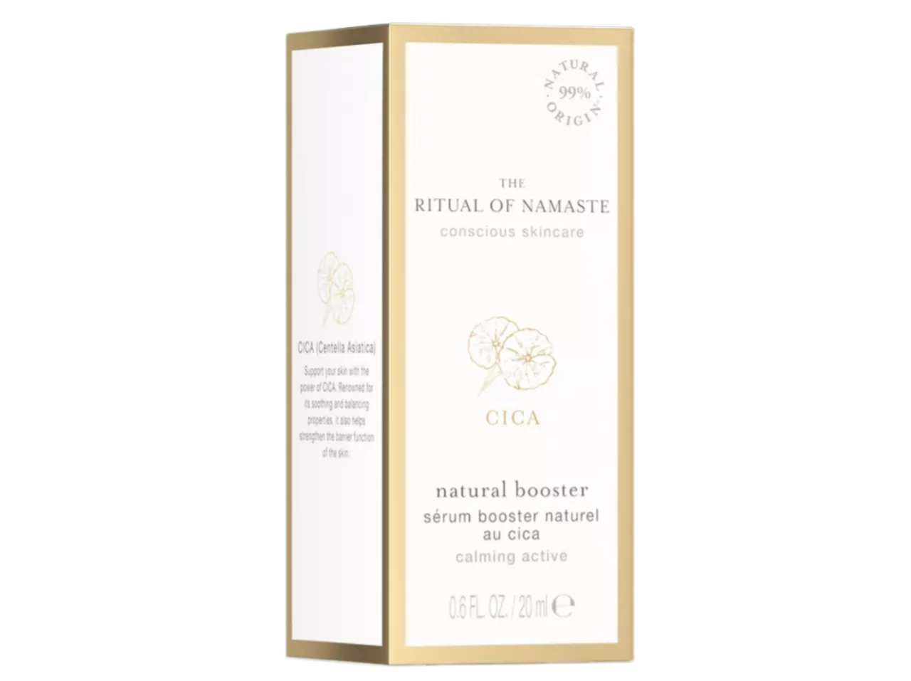 Наш бустер тройного действия придает коже сияющий и молодой вид. Это стало возможным благодаря успокаивающим и балансирующим свойствам регенерирующей кожу центеллы (готу-колы) и способности гиалуроновой кислоты поддерживать увлажнение и уменьшать тонкие морщины. Ритуал Namaste CICA Natural Booster Обогатите свой ежедневный уход за кожей уникальной центеллой (готу круга), содержащейся в этом бустере, содержащем 99% ингредиентов природного происхождения. Центелла стимулирует обновление клеток кожи, обеспечивая сияющий цвет лица. Кроме противовоспалительных свойств и укрепления защитного барьера кожи этот ингредиент также увеличивает выработку коллагена. Это не только уменьшает появление тонких линий и морщинок, но благодаря своим успокаивающим свойствам оно также является идеальным выбором для людей с чувствительной кожей. Формула бустера также обогащена гиалуроновой кислотой, которая помогает улучшить и поддерживать увлажненность кожи ипредотвращает появление морщин.