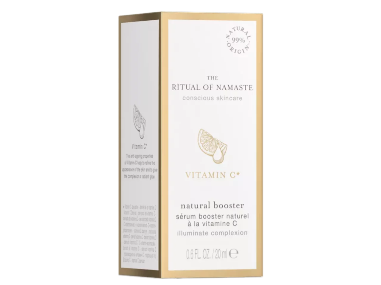 Подчеркните сияние и заметно разгладьте тонкие линии, используя этот продукт с формулой на водной основе, обогащенной производными витамина С. Легкий и освежающий продукт оставляет шелковистый финиш. описание Используйте естественный бустер Ritual of Namaste Vitamin C*, чтобы придать вашему лицу сияние. Производная витаминов* в этом бустере с формулой, состоящей из 99% натуральных ингредиентов, помогает восстановить кожу, улучшая ее тонус и заметно разглаживая тонкие морщинки. Улучшите свой ежедневный уход с помощью этой формулы на водной основе с витамином С, которая обладает антиоксидантными и антивозрастными свойствами, что оставляет легкий шелковистый оттенок. Ингредиенты Вода/вода, пентиленгликоль, аскорбилглюкозид, бетаин, полиглицерил-4-капрат, экстракт плодов Lycium Barbarum, биосахарид камедь-1, левулин натрия, глицерин, глицерилкаприлат, каприл/каприл глюкозилд, ксАнизат, гидроксид натрия, цитрат натрия, лимонен, цитраль, линалоол, цитронелол, бензиловый спирт, духи/аромат.