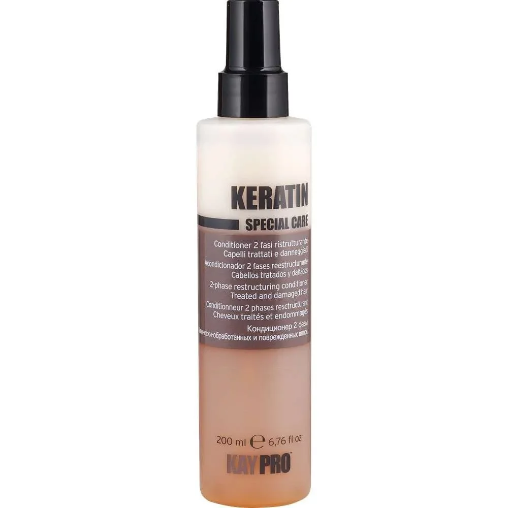 Двухфазный спрей в состав которого входят активные ингредиенты и кератин, он внедряет кератин, который восстанавливает поврежденные волосы после химической обработки, а также способствует восстановлению ослабленной структуры волос.