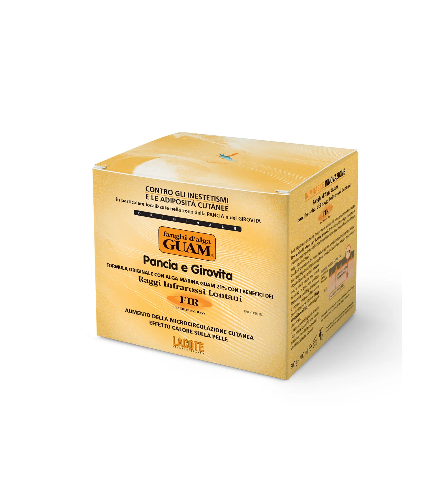 В новой версии знаменитые неподдающиеся имитации антицеллюлитные маски GUAM объединены с действием длинноволнового инфракрасного излучения FIR (Far Infrared Rays)! Нанесение маски вызывает усиление подкожной микроциркуляции. Секрет эффективного антицеллюлитного воздействия масок GUAM заключается в их уникальном составе – маски содержат морские водоросли GUAM (21%), каолиновую глину, высокоактивные растительные экстракты и эфирные масла, обладающие липолитическим и восстанавливающим действием. Все компоненты масок были отобраны и соединены в оптимальном соотношении для получения эффективного воздействия на кожу. Исследования и эксперименты, проводимые компанией LACOTE в течение нескольких последних лет, касались взаимодействия активных компонентов масок GUAM (морские водоросли и каолиновая глина) с природными минералами. В результате было получено экстраординарное усиление эффективности действия масок, после обогащения их состава черным.турмалином, природным минералом, микронизированным до 53 микрон (размер, при котором минерал турмалин сохраняет все свои свойства). Благодаря инновационному составу применение грязевых масок GUAM стало еще более эффективным. При нанесении маски тепло концентрируется на поверхности кожи тела, повторно выделяется и проходит в более глубокие слои в виде длинноволновых инфракрасных лучей (FIR). Это излучение разогревает глубокие слои кожи и усиливает микроциркуляцию, что значительно увеличивает усвоение клетками кожи активных веществ, содержащихся в морских водорослях и растительных экстрактах. Перед применением маску рекомендуется тщательно перемешать. Нанести на кожу легкими массирующими движениями. Обернуть зону живота и талии пленкой и оставить действовать на 30 минут. Снять плёнку и смыть остатки маски теплой водой без использования моющих средств. Ощущение тепла, покраснения, жжения во время процедурыи легкое краснота кожи после процедуры являются нормальными проявлениями. Предостережение: вызывает значительный разогрев кожи! Рекомендуется перед нанесением провести тест на проверку реакции кожи. При очень сильном красноте необходимо смыть средство и прекратить процедуры. Противопоказанием для проведения процедуры с маской есть беременность, слабые сосуды, чувствительная кожа. Не использовать после депиляции! Не используйте при наличии аллергии на компоненты маски. Не используйте для раздраженной и поврежденной кожи. Осторожность: Избегать контакта с глазами и слизистыми оболочками, наносить только на неповрежденную кожу. Не подвергайтесь воздействию солнечных лучей после использования этого средства. Для наружного использования. Вымыть руки после использования. Состав: минерал черный турмалин, экстракт и порошок водорослей Guam, каолиновая (белая) глина, фитоэкстракт водоросли фукус, экстракт конского каштана и плюща,эфирные масла лимона и шалфея, эсцин, кофеин, метилникотинат. Не содержит Paraben, PEG, синтетические красители, ингредиенты животного происхождения, парафины.
