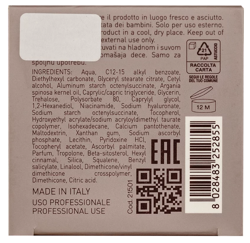 АРГАНОВОЕ МАСЛО: считается эффективным природным ингредиентом от морщин, его состав богат антиоксидантами, которые противодействуют образованию свободных радикалов, вызывающих старение кожи, и увлажняющими веществами, увеличивающими выработку коллагена и поддерживающими эластичность волокон, помогая таким образом кожей.