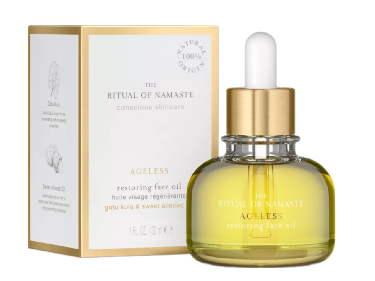 Это насыщенное питательное масло, полное мощных ингредиентов, таких как азиатское центелла и миндальное масло, омолаживает кожу и восстанавливает ее баланс. Спасение для усталой кожи. описание Подчеркните свою природную красоту и восстановите кожу с помощью масла для лица от Ritual of Namaste, содержащего 100% ингредиентов натурального происхождения. Сражается с морщинами и недостатками, делая кожу мягкой, успокоенной и подтянутой, возвращая ей гладкость и молодой вид. 100% ингредиенты натурального происхождения для всех типов кожи, даже чувствительной дерматологически протестированный продукт