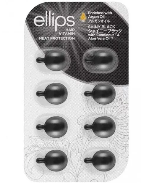 Ellips Hair Vitamin Shiny Black with Kemeri & Aloe Vera Oil Витамины для волос "Ночное сияние" с фундуком и маслом Алоэ Вера Обеспечить волосам питание полезными веществами стало крайне легко. Инновационные витамины для волос «Ночное сияние» с фундуком и маслом алоэ вера от индонезийского бренда Ellips тщательно ухаживают за вашими локонами, делая их блестящими и послушными. Капсулы очень удобно применять. В их состав входят питательные компоненты, в числе которых и ценное масло алоэ веры, которое помогает волосам стать крепким, сильным, шелковистым и гладким. Средство также содержит масло фундука, увлажняющее волосы. Сочетание витаминов А, С, Е и провитамин В5 мощно оздоравливает локоны и защищает их от вредного ультрафиолета. Марокканское масло способствует усвоению всех нужных составляющих продукта. Благодаря легкой текстуре содержание капсул не жирнит и не отягощает волосы, быстро растворяется. Легкость, скорость и польза примененияпродукта делает его отличным средством по уходу за темными волосами. Способ применения Отрезать кончик капсулы ножницами и нанести содержимое на чистые, влажные волосы (предварительно подсушить полотенцем). Не требует смывания. Высушить и уложить волосы обычным способом. Состав Cyclopentasiloxane, Cyclotetrasiloxane, Dimethiconol, Phenyl Trimethicone, Fragrance, Tocopheryl Acetate, Soybean (Glycine Soja) Oil, Ascorbyl Palmitate, Retinyl Palmitate, Aloe Barbadensis Oaf Oil, Aleurites Moluccana Spinosa Oil.