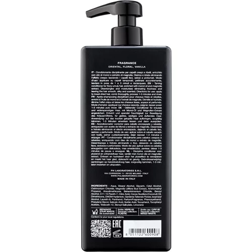 Кондиционер для укрощения пушящихся непослушных волос. Обогащен маслом моной и экстрактом магнолии. Распутывает и увлажняет волосы, устраняет пушистость. Делает волосы гладкими и шелковистыми, оставляя на них легкий, приятный аромат. Активные ингредиенты: – Масло моной • богата витамином Е, сокращает образование свободных радикалов и замедляет процессы старения. Питает, увлажняет и кондиционирует волосы, облегчает расчесывание, придает блеск и мягкость, уменьшает пушистость. Масло моной также оказывает защитное действие, препятствует потере влаги, предотвращает ломкость волос и образование секущихся кончиков. - экстракт магнолии • содержит фенольные соединения, в том числе магнолол и хонкиол, которые являются мощными антиоксидантами с успокаивающими и увлажняющими свойствами. Они способствуют повышению эластичности волос, защищают структуру, делают их здоровыми и блестящими. Аромат: Верхние нотки • восточные • аромат строитсявокруг изящного медового аккорда, дополненного нотами красных апельсинов и чувственных белых цветов. Средние нотки • цветочные груша и жасмин добавляют лета в композицию. Базовые нотки • ваниль • нотки ванили, пачули и элегантного белого мускуса придают полноту аромата. Применение: нанесите на чистые, подсушенные полотенцем волосы, прочешите и оставьте на 1-3 минуты. Смойте.