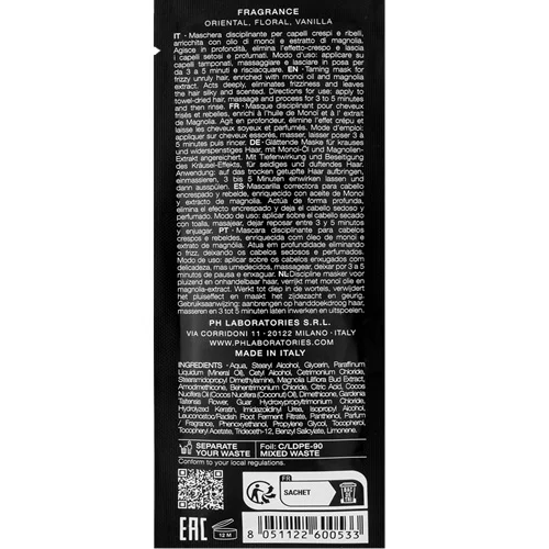 Маска для укрощения пушящихся непослушных волос. Обогащена маслом моной и экстрактом магнолии. Проникает глубоко в структуру, устраняет пушистость, делает волосы мягкими и шелковистыми. Оставляет на волосах легкий, приятный аромат. Активные ингредиенты: – Масло моной • богата витамином Е, сокращает образование свободных радикалов и замедляет процессы старения. Питает, увлажняет и кондиционирует волосы, облегчает расчесывание, придает блеск и мягкость, уменьшает пушистость. Масло моной также оказывает защитное действие, препятствует потере влаги, предотвращает ломкость волос и образование секущихся кончиков. - экстракт магнолии • содержит фенольные соединения, в том числе магнолол и хонкиол, которые являются мощными антиоксидантами с успокаивающими и увлажняющими свойствами. Они способствуют повышению эластичности волос, защищают структуру, делают их здоровыми и блестящими. Аромат: Верхние нотки • восточные • аромат строится вокругизящного медового аккорда, дополненного нотами красных апельсинов и чувственных белых цветов. Средние нотки • цветочные груша и жасмин добавляют лета в композицию. Базовые нотки • ваниль • нотки ванили, пачули и элегантного белого мускуса придают полноту аромату. Применение: нанесите на чистые, подсушенные полотенцем волосы массирующими движениями, выдержите 3-5 минут. Смойте.