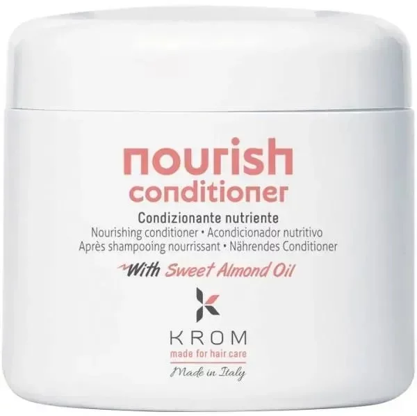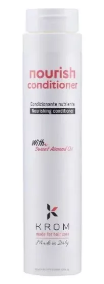 После очищения волос очень важно правильно позаботиться о них. Питательный кондиционер с экстрактом сладкого миндаля Krom Nourish Conditioner – это отличный выбор для обладательницы сухих, ломких, тусклых локонов. Благодаря активной формуле он проникает в структуру иссеченных прядей, сглаживает разрыхленные после мытья волосяные чешуйки и способствует регенерации поврежденных участков.