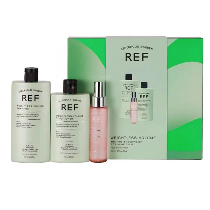 REF Gift Box Weightless Volume является идеальным подарком, который можно презентовать близким или побаловать себя, будь то праздник, день рождения или другой особый случай. В наборе представлены три продукта, созданные для волос, которым необходим дополнительный объем. Эти уникальные формулы специально разработаны для защиты, укрепления и улучшения структуры тонких или негустых волос. Продукты сочетают в своем составе питательные и ухаживающие компоненты, которые насыщают тонкие волосы полезными микроэлементами, дарят локонам максимальный объем, здоровый вид и роскошное сияние. Яркие цвета и изысканные детали этого набора отражают стиль бренда: красивый, естественный и увлекательный дух.