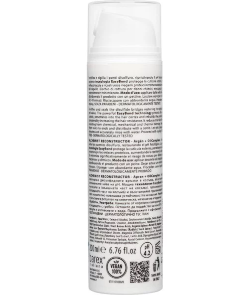 Barex Olioseta Nourish Alchemist Reconstructor — это высокоэффективное средство для глубокого восстановления волос, созданное для поврежденных и ослабленных прядей. Его активная формула восстанавливает разрушенные протеиновые связи и кератиновую структуру, возвращая волосам прочность, эластичность и гладкость.