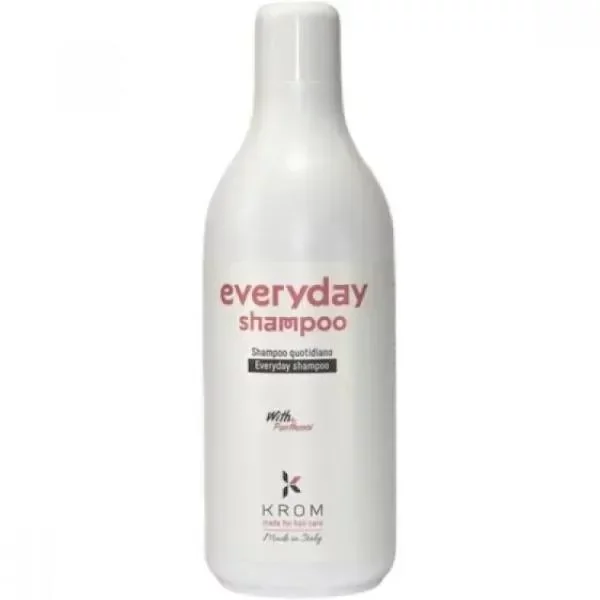 Профессиональный шампунь для ежедневного ухода с пантенолом Krom Everyday Shampoo – это идеальный выбор для очищения жирной кожи головы и поврежденных волос. Он эффективно устраняет избыток себума, пыли, бактерии, ороговевшие дольки и остатки стайлинга. Косметический продукт содержит ингредиенты натурального происхождения и пантенол, поэтому оказывает на локоны очень благоприятный эффект. Он способствует нормализации работы сальных желез, активизирует рост завитков и препятствует образованию перхоти.