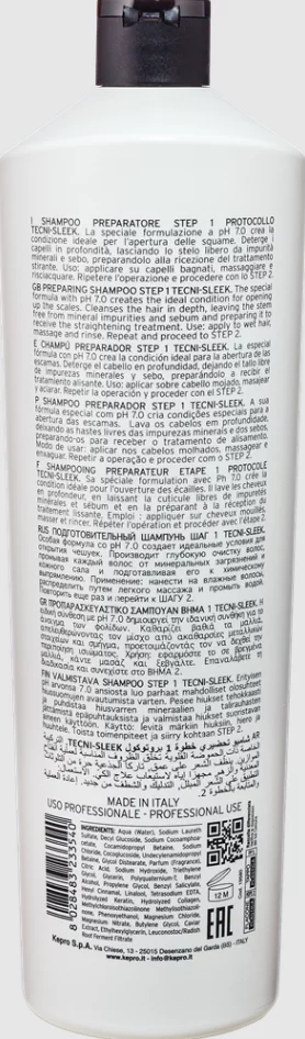 Подготовительный шампунь шаг 1 Tecni-Sleek. Особая формула с рН 7.0 создает идеальные условия для открытия чешуек. Производит глубокое очищение, промывая каждый волос от минеральных загрязнений и кожного сала, подготавливая волосы к химическому выпрямлению.