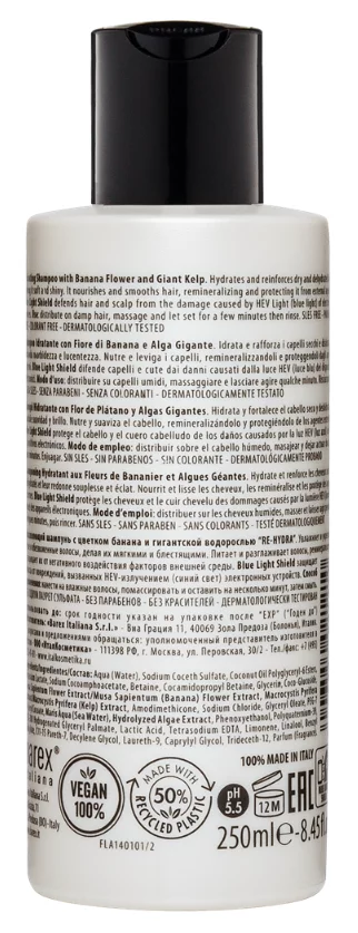 Глубоко увлажняет, восстанавливая силу, мягкость и блеск сухих волос. Благодаря ингредиентам с реминерализирующим действием шампунь питает и разглаживает волосы, укрепляет и защищает их от внешних агрессивных воздействий. Обогащен экстрактом бананового цветка и экстрактом бурых водорослей. С фильтром Blue Light Shield.