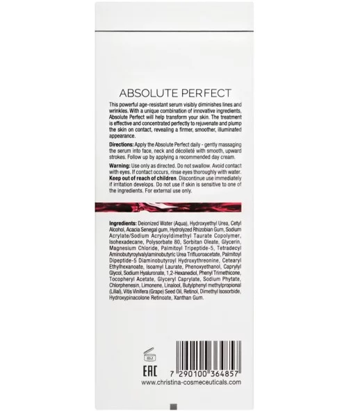 Сыворотка с сильным антивозрастным действием. Эффективно преображает кожу, делая ее более упругой, и сияющей сразу после нанесения. Активный омолаживающий комплекс, содержащийся в Chateau de Beaute Absolute Perfect, разглаживает морщины и улучшает текстуру кожи. Содержит ретинол.