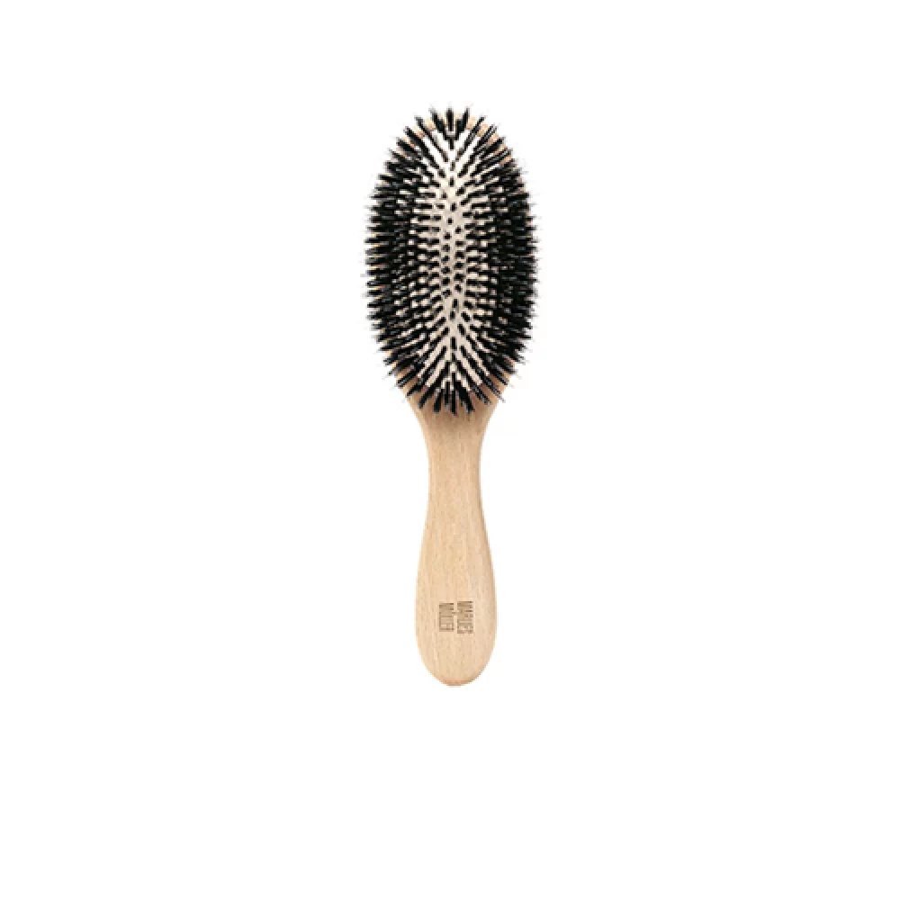 Щітка Marlies Moller Allround Hair Brush ефективно очищає волосся та усуває залишки стайлінгових засобів, не залишаючи на локонах та сліду. Аксесуар розплутує сухе волосся, допомагає надати пасам гладкість і блиск (волосся засяє після інтенсивного розчісування). Ідеально підходить для волосся будь-якої довжини, для очищення шевелюри перед використанням шампуню, для стайлінгу (створення начісування, високих зачісок).