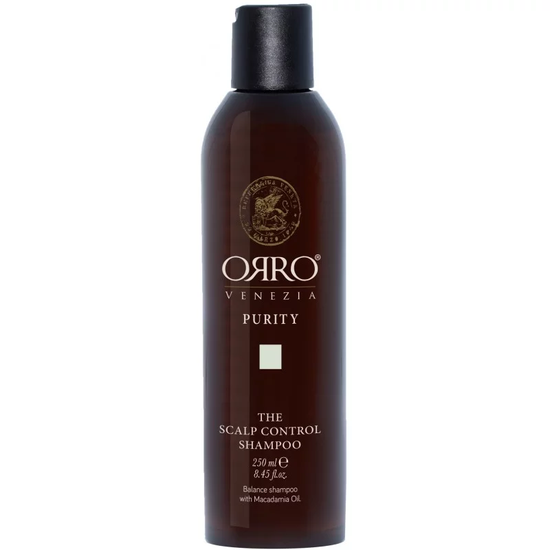 ORRO PURITY Scalp Control Shampoo - Шампунь для очищення шкіри голови. Завдяки своєму заспокійливому та балансуючому ефекту, м'яко очищає та заспокоює подразнену шкіру голови. Також підходить для найчутливішого волосся. Протидіяє лупи і регулює надлишкове вироблення шкірного сала. Надає блиск і знеблиск тонкому волоссю. Екстракти берези та окремі рослинні компоненти мають антисептичну та шкірно-регулюючу дію. Ефірне масло розмарину зберігає та захищає ліпідний баланс шкіри голови. Шампунь ефективно заспокоює та м'яко очищає шкіру голови. Комплекс органічної олії макадамії, екстрактів берези, екстрактів арніки та ефірної олії розмарину сприяє протимікробній та протизапальній дії на шкірі голови. Шампунь регулює надмірне вироблення шкірного сала і протидіє лупи.