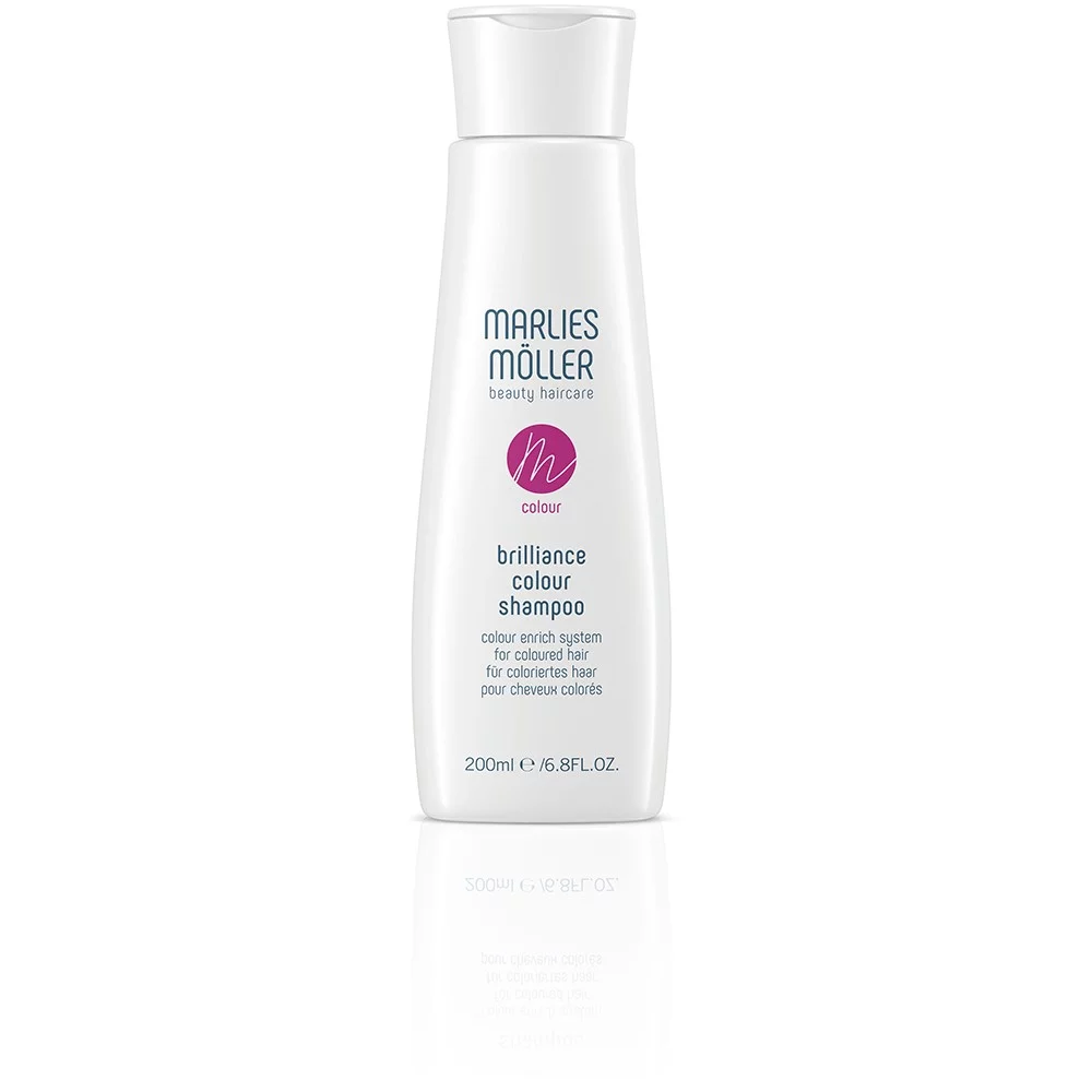 Шампунь Marlies Moller Brilliance Colour Shampoo дбайливо очищає волосся від забруднення, усуває надлишки шкірного жиру, сприяє зменшенню лущення та подразнення шкірного покриву голови. У складі засобу - екстракт рису, ефірні олії та рідкий кератин, завдяки чому продукт насичує локони вітамінами та необхідними елементами, пом'якшує та живить їх.