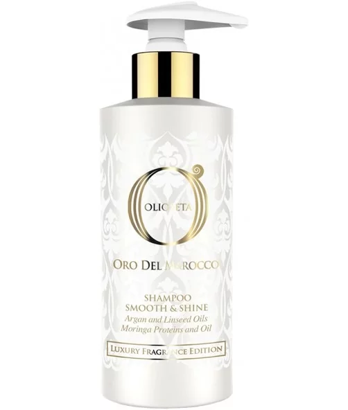 Шампунь Barex Olioseta Oro del Marocco Smooth&Shine приборкує неслухняне волосся та усуває пухнастість, забезпечуючи ефект бездоганної гладкості. Завдяки корисним властивостям протеїнів і натуральних олій надає волоссю надзвичайної м'якості та інтенсивного блиску. Заспокоює шкіру голови, реструктурує і розплутує волосся, глибоко живить його та розгладжує.