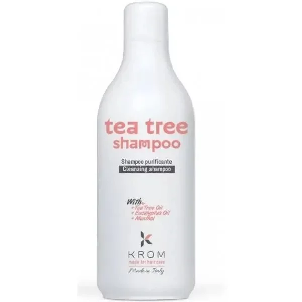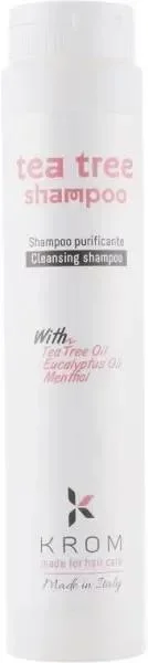 Для догляду за жіночими пасмами жирного типу ідеально підходить шампунь очисний з олією чайного дерева, олією евкаліпта та ментолом Krom Tea Tree Shampoo.