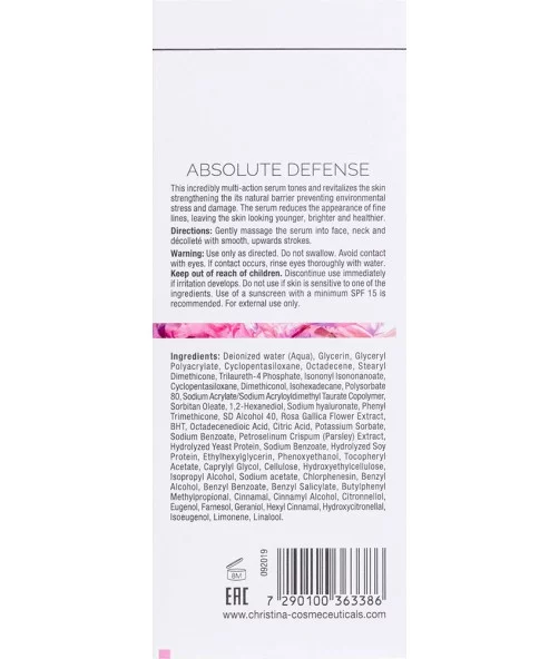 Сироватка зволожує, відновлює та зміцнює природний захисний бар'єр шкіри. Завдяки інноваційному комплексу Telosense Active нормалізується життєвий цикл клітин, їх функції, що забезпечує профілактику вікових змін шкіри. Muse Absolute Defence захищає від негативного впливу довкілля.