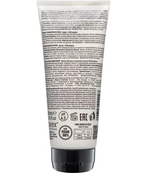 Barex Olioseta Nourish Thermo-Seal Cream — це легкий незмивний крем для захисту волосся від високих температур під час сушіння феном або використання стайлера. Засіб інтенсивно живить волосся, зберігаючи його м’якість, силу та блиск без обтяження.