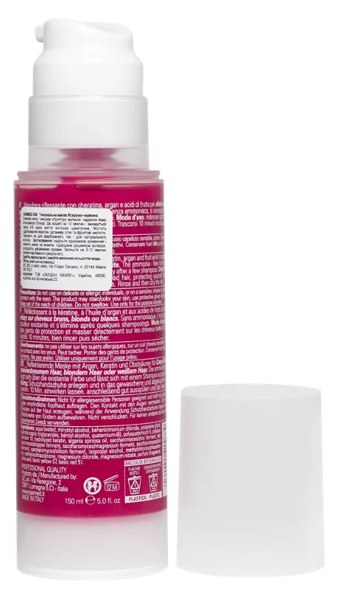- Гідролізат кератину, арганова олія, фруктові кислоти: мають реструктурну, розплутувальну та поліруючу дію.