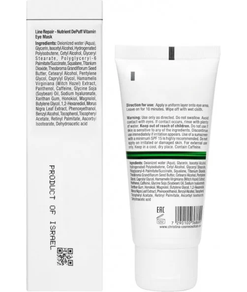 Спосіб використання: нанесіть рівним шаром на шкіру навколо очей. Залишіть на 10 хв. Видаліть вологою серветкою.