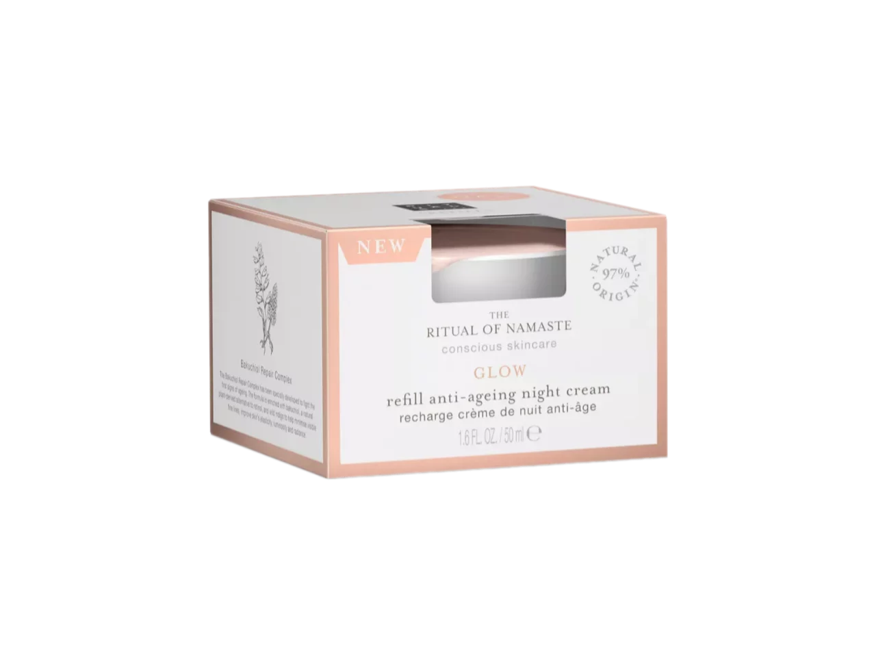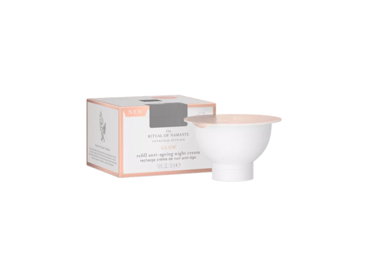 Продемонструйте турботу про свою шкіру та нашу планету еко-шикарними поповненнями нічного антивікового крему від The Ritual of Namaste. Наповнювач ідеально поміщається у вашу розкішну баночку та містить той самий унікальний відновлюючий комплекс Bakuchiol, який допомагає регенерувати шкіру під час сну. Він забезпечує шкіру інтенсивною дозою активних інгредієнтів під час сну, щоб забезпечити її молодий вигляд вранці. Крем відновлює шкіру та надає їй сяйва завдяки формулі, що містить ефективні інгредієнти, такі як бакухіол, природний еквівалент ретинолу