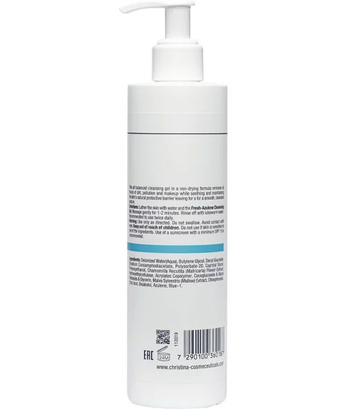 Азуленовий гель дбайливо очищує чутливу шкіру, не пересушує її і не залишає відчуття стягнутості. Fresh Azulene Cleansing Gel завдяки рослинним екстрактам заспокоює подразнену шкіру. Підходить для щоденного очищення.