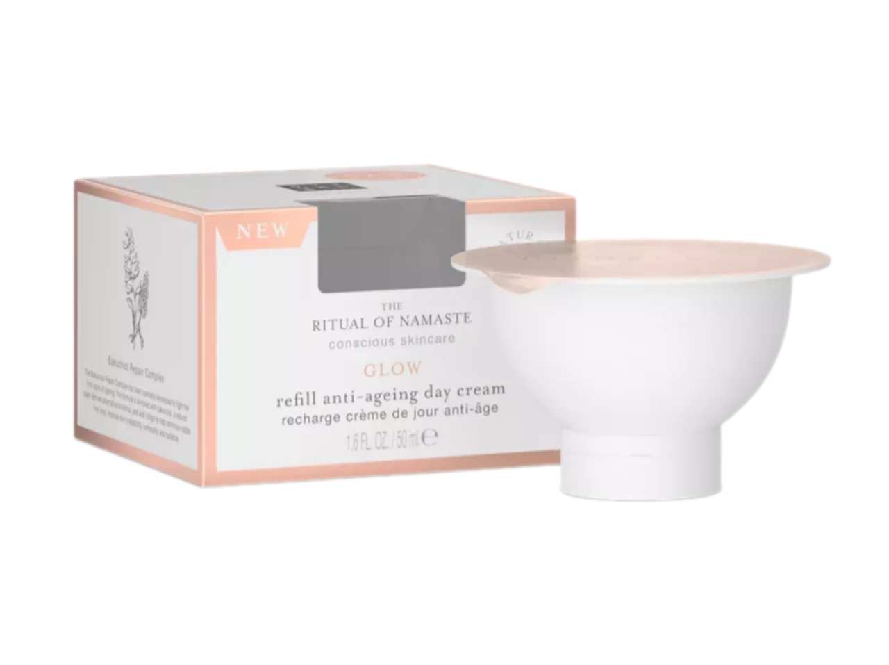 Продемонструйте турботу про свою шкіру та нашу планету еко-шикарними поповненнями денного антивікового крему від The Ritual of Namaste. Наповнювач ідеально вписується у вашу розкішну оригінальну баночку та містить ту саму легку формулу, яка оживляє шкіру та надає їй сяйва. Крем збагачений нашим новим унікальним відновлюючим комплексом Bakuchiol і допомагає мінімізувати появу тонких зморшок, покращує еластичність шкіри та захищає її від негативного впливу вільних радикалів. Ефект? М’якша та пружніша шкіра з молодшим виглядом.