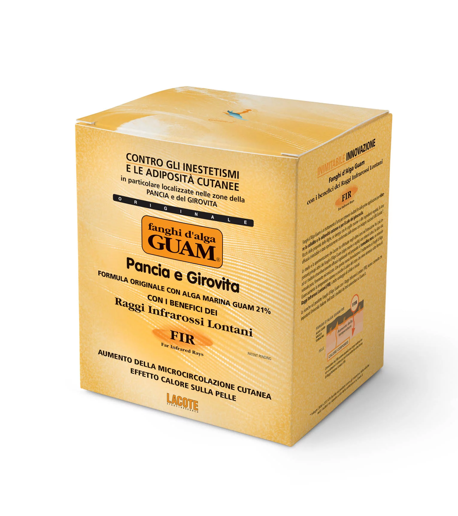 У новій версії знамениті антицелюлітні маски GUAM, що не піддаються імітації, об’єднані з дією довгохвильового інфрачервоного випромінювання FIR (Far Infrared Rays)! Нанесення маски викликає посилення підшкірної мікроциркуляції. Секрет ефективного антицелюлітного впливу масок GUAM полягає в їх унікальному складі – маски містять морські водорості GUAM (21%), каоліновий глину, високоактивні рослинні екстракти та ефірні масла, які мають липолитическое і відновлює дію. Всі компоненти масок були відібрані і з’єднані в оптимальному співвідношенні для отримання найефективнішого впливу на шкіру.