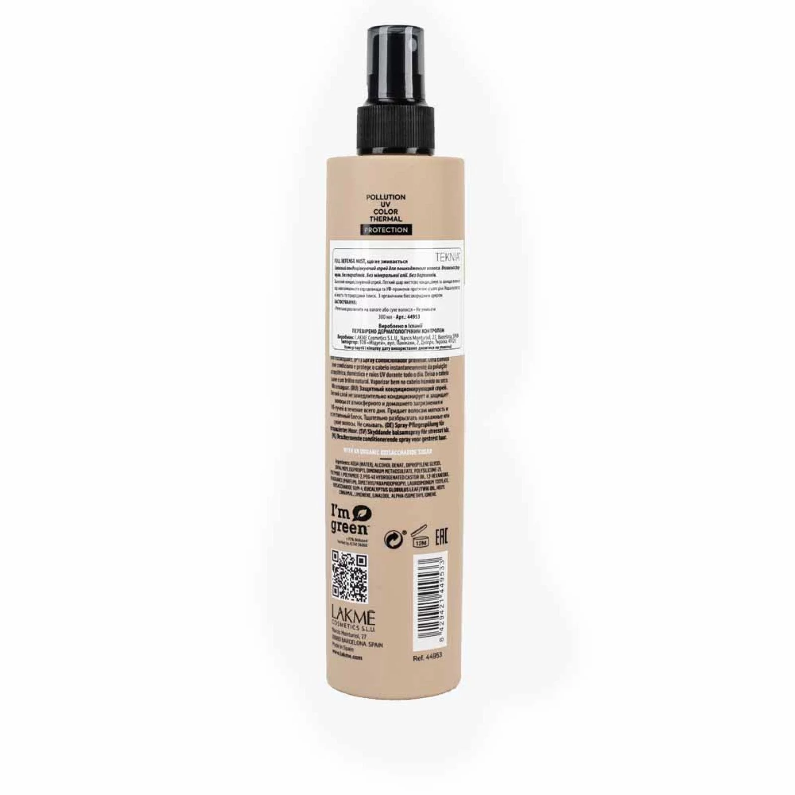 Легкий кондиціонер-спрей Teknia Full Defense Mist іспанського бренду Lakme забезпечує ідеальний захист волосся від зовнішніх забруднень і УФ-променів, дарує неймовірну м'якість і природний блиск.