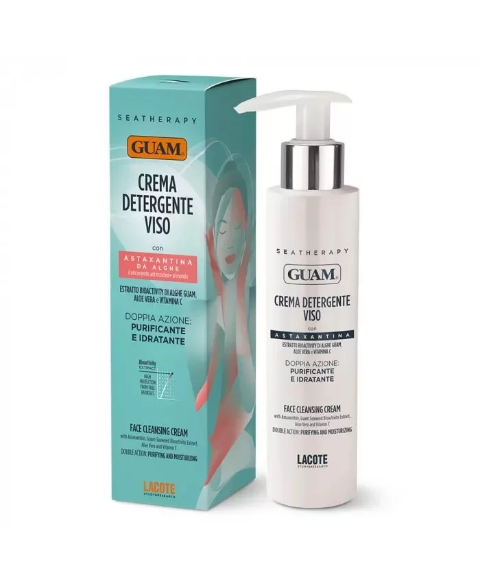 Засіб розроблений для делікатного очищення шкіри обличчя та шиї. Надає подвійну дію очищення та зволоження під час вашого щоденного ритуалу догляду за обличчям. Крем ретельно знімає макіяж та видаляє забруднення. Має збалансовану формулу, завдяки унікальному складу засіб не тільки очищує, а й водночас зволожує шкіру, підтримує її фізіологічний рівень pH, відновлює її природне сяйво. Крем надає комплексну дію – завдяки синергії між активним зволожувальним комплексом на основі рослинних екстрактів, астаксантином, вітаміном С, алое вера та екстрактом водоростей Guam®. Крем відновлює зволоження та м’якість обличчя після очищення, захищає шкіру від дії вільних радикалів.